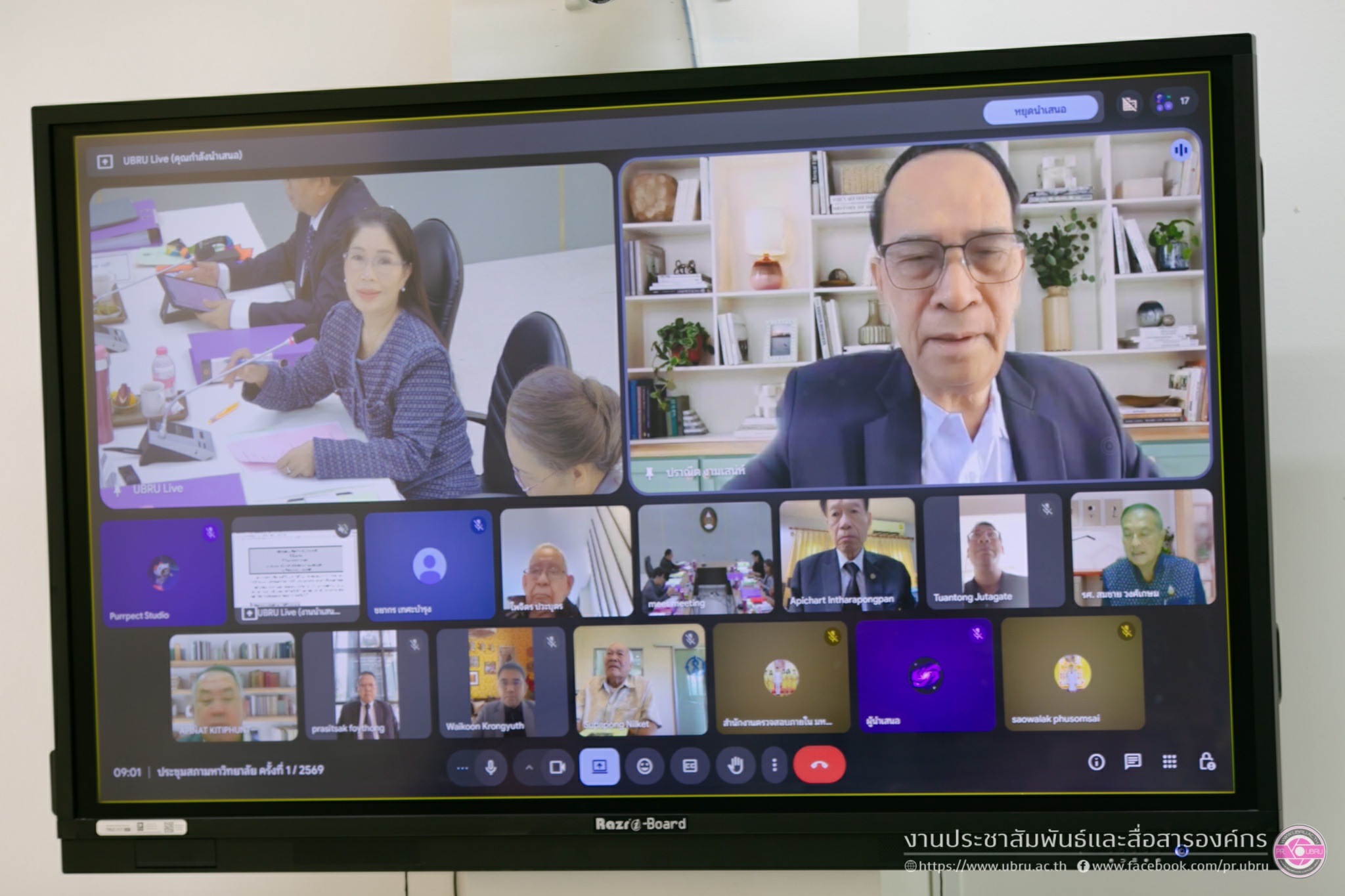 ๒๐ ม.ค. ๒๕๖๙ ที่ห้องประชุม ชั้น ๓ อาคารเรียนและปฏิบัติการ มหาวิทยาลัยราชภัฏอุบลราชธานี การประชุมสภามหาวิทยาลัย ครั้งที่ ๑/๒๕๖๙ ผ่านสื่ออิเล็กทรอนิกส์ โดยมี